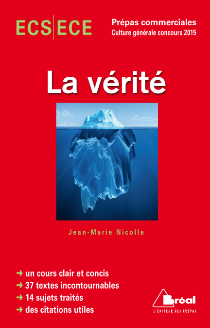 Destiné aux étudiants de seconde année des classes préparatoires ECS et ECE, cet ouvrage propose une synthèse de savoirs et de savoir-faire sur le thème de culture générale des concours 2014 : la vérité Il constitue un outil complet et efficace pour la préparation aux épreuves des concours, grâce à une structure simple en trois parties : - un cours claire et concis pour cerner les problématiques essentielles; - une présentation d'une trentaine de textes fondamentaux, de Platon à Delerm; - une quinzaine de dissertations guidées. Un petit recueil de citations utiles, une bibliographie et des index complètent cet ensemble : 192 pages seulement et tout pour réussir l'épreuve de culture générale.