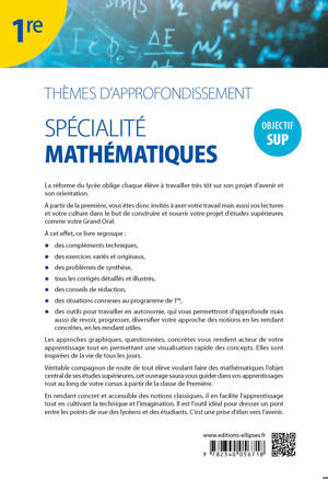 Véritable compagnon de route de tout élève voulant faire des mathématiques l’objet central de ses études supérieures, cet ouvrage saura vous guider dans vos apprentissages tout au long de votre cursus à partir de la classe de Première.