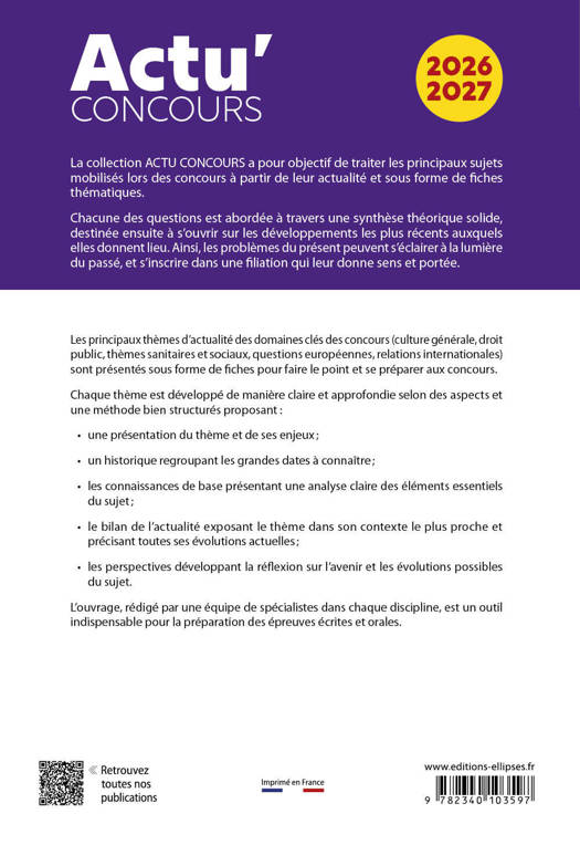 L’ouvrage, rédigé par une équipe de spécialistes dans chaque discipline, est un outil indispensable pour la préparation des épreuves écrites et orales.