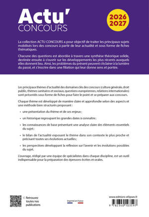 Les principaux thèmes d’actualité des domaines clés des concours (culture générale, questions sociales, économie, relations internationales) sont présentés sous forme de fiches pour faire le point et se préparer aux concours.