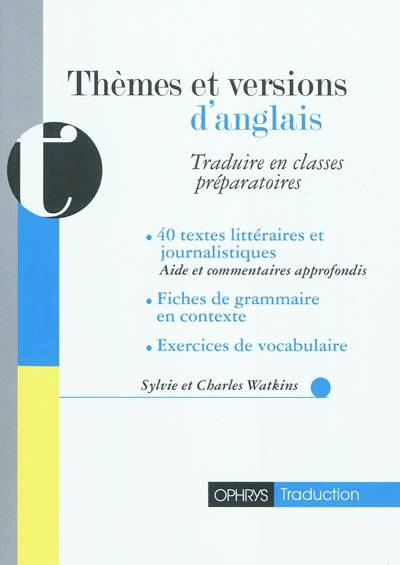 Cet ouvrage d'entraînement à la traduction est destiné aux étudiants des classes préparatoires commerciales et scientifiques. Il sera également utile aux étudiants en classes préparatoires littéraires et en licence d'anglais. Différents types de versions et thèmes sont proposés, journalistiques, littéraires et grammaticaux. Tous les textes suivis sont des sujets de concours récents proposés par les écoles de commerce et d'ingénieurs.