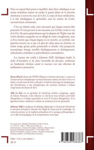 Dans un exposé bien pensé et équilibré, deux laïcs catholiques et un moine orthodoxe tentent de sonder le grand abîme de la doctrine chrétienne à travers les yeux de la Foi. Le sujet de leurs méditations, à la fois théologiques et spirituelles, sont les articles du Credo, successivement commentés.