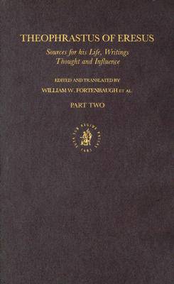 These two volumes represent the first fruits of an international project to produce a new collection - text, translation and commentary - of the fragments and testimonia relating to Theophrastus (c. 370-288/5 B.C.), Aristotle's pupil and successor as head of the Lyceum. The need for a new collection was apparent: the standard collection, by Wimmer, is already 120 years old, whereas we now have far better texts of many of the ancient authors in which fragments and testimonia of Theophrastus occur. Whilst classicists have devoted the past hundred years to bringing into the light the work of the major post-Aristotelian schools, the contribution of Theophrastus has remained obscure. The second printing contains corrections to the first. This first stage of the project presents the texts, critical apparatus and English translation of the fragments and testimonia. It contains a long methodological introduction, an index of Theophrastean texts and concordances with other collections (Scheider, Wimmer and the several recent partial editions). The second stage of the project, which Brill will also publish will consist of 9 commentary volumes, planned at present as follows: 1. Life, Writings, various reports (M. Sollenberger, Mt. St. Mary's College) 2. Logic (P.M. Huby, Liverpool University) 3. Physics (R.W. Sharples, University College London) 4. Metaphysics, Theology, Mathematics, Psychology (P.M. Huby, Liverpool University) 5. Human Physiology, Living Creatures, Botany (R.W. Sharples, University of London) 6. Ethics, Religion (W.W. Fortenbaugh, Rutgers University) 7. Politics (J. Mirhady) 8. Rhetoric, Poetics (W.W. Fortenbaugh, Rutgers University) 9. Music, Miscellaneous Items and Index of proper names, subject index, selective index of Greek, Latin and Arabic terms (several authors/editors). Most of the nine commentary volumes will include significant discussion of Arabic texts, with contributions by Dimitri Gutas (Yale University) and Hans Daiber (Free University of Amsterdam). It is expected that the first commentary volume, volume 5, will appear in the course of 1993