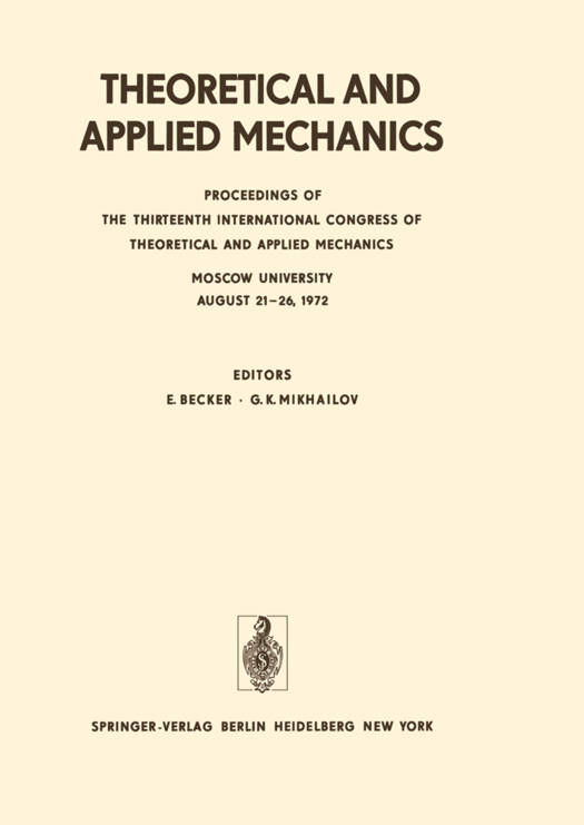 The Thirteenth International Congress of Theoretical and Applied Mechanics was held in Moscow from Monday, 21 August, to Saturday, 26 August 1972. About 2500 participants from 37 countries all over the world attended the congress that was convened by the Congress Committee of the International Union of Theoretical and Applied Mechanics. The local or- ganization lay in the hands of the Organizing Committee, established by the USSR National Committee on Theoretical and Applied Mechanics. The USSR Academy of Sciences rendered partial financial help to the organization of th8 congress. The Organizing Committee was assisted by the Institute of Problems of Mechanics of the USSR Academy of Sciences, by the Research Institute for Mechanics of Moscow University, and by the Computing Center and the Institute of Applied Mathematics of the USSR Academy of Sciences. The Bureau of IUTAM had allocated a considerable sum for partial financial support of young scientists attending the congress. The Thirteenth Congress was officially opened on Monday morning at the Kremlin Palace of Congresses by Academician N. 1. Muskhelishvili, President of the Congress, and Professor W. T. Koiter, President of IUTAM. Greeting addresses were offered by: Mr. K. N. Rudnev, Minister, member of the Council of Ministers of the USSR, Academician M. V. Keldysh, President of the USSR Academy of Sciences, Mr. L. N.