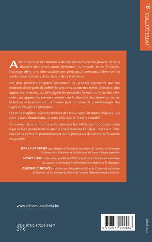 Ce livre introduit aux principaux concepts et outils contemporains de la théorie littéraire. Alliant l'exposé des notions à des illustrations variées puisées dans la diversité des productions littéraires du monde et de l'histoire, l'ouvrage offre une introduction aux principaux concepts, références et outils contemporains de la théorie de la littérature.