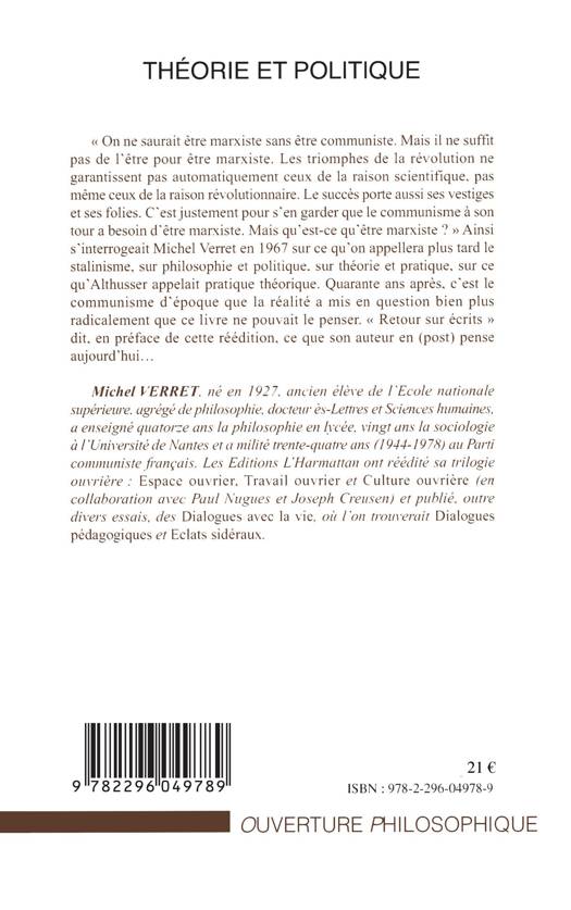 « On ne saurait être marxiste sans être communiste. Mais il ne suffit pas de l'être pour être marxiste. Les triomphes de la révolution ne garantissent pas automatiquement ceux de la raison scientifique, pas même ceux de la raison révolutionnaire. Le succès porte aussi ses vestiges et ses folies. C'est justement pour s'en garder que le communisme à son tour a besoin d'être marxiste. Mais qu'est-ce qu'être marxiste ? ». Ainsi s'interrogeait Michel Verret en 1967 sur ce qu'on appellera plus tard le stalinisme, sur philosophie et politique, sur théorie et pratique, sur ce qu'Althusser appelait pratique théorique.