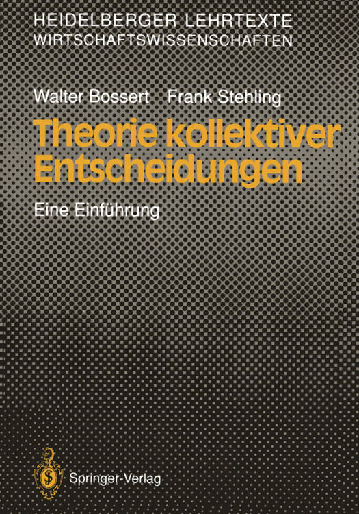 Kollektive Entscheidungen, also Entscheidungen einer Gruppe von Personen für die Gruppe, spielen in allen Bereichen menschlichen Zusammenlebens eine wichtige Rolle. Das Buch bietet eine systematische Einführung in die moderne Theorie kollektiver Entscheidungen, wie sie insbesondere von Arrow begründet wurde. Es richtet sich an Studenten der Wirtschafts- und Sozialwissenschaften und behandelt die prominentesten Methoden, mit denen auf der Basis individueller Wertvorstellungen Gruppenentscheidungen getroffen werden. Ausgehend von konkreten Entscheidungsmechanismen, wie den diktatorischen, oligarchischen, rituellen und den Einstimmigkeits- und Mehrheitsentscheidungen, werden in axiomatischer Weise Eigenschaften bzw. Anforderungen an die Entscheidungsprozedur formuliert und diskutiert, die sicherstellen sollen, daß das Entscheidungsergebnis "vernünftig" ist. Zusätzlich werden auch neuere Ergebnisse über die Berücksichtigung interpersoneller Nutzenvergleiche bei der kollektiven Entscheidungsfindung, über optimale Kompromisse und über die Manipulierbarkeit kollektiver Entscheidungen vorgestellt.