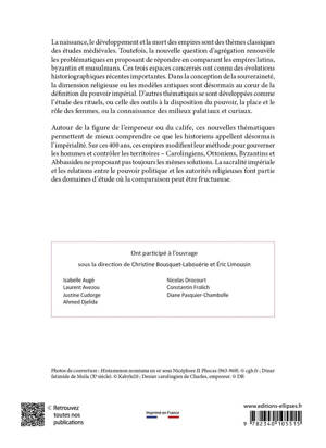 La naissance, le développement et la mort des empires médiévaux sont des thèmes classiques des études médiévales. Toutefois, la nouvelle question d’agrégation renouvèle les problématiques en proposant de répondre en comparant les empires latins, byzantins et musulmans. Ces trois espaces concernés ont connu des évolutions historiographiques récentes importantes. Dans la conception de la souveraineté, la dimension religieuse ou les modèles antiques sont désormais au cœur de la définition du pouvoir impérial. D’autres thématiques se sont développées comme l’étude des rituels, ou celle des outils à la disposition du pouvoir, la place et le rôle des femmes, ou la connaissance des milieux palatiaux et curiaux.