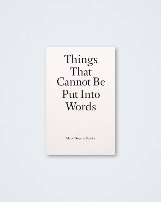 Things That Cannot Be Put Into Words is an artist's book written by Marie-Sophie Beinke and published by M-S B Verlag and HOPPER&FUCHS (originally published in German in 2021 by M-S B Verlag) and five translations of the same book as paperback editions. This publishing project consists of a mainly blank book, open to every possible idea and image. Things, that cannot be put into words: What has disappeared, the snatched away, the absent, the nothingness, the void are made present. Space for the thinkable, where words fail. An artist's book that openly invites readers to critical thinking, dialogue and debate.