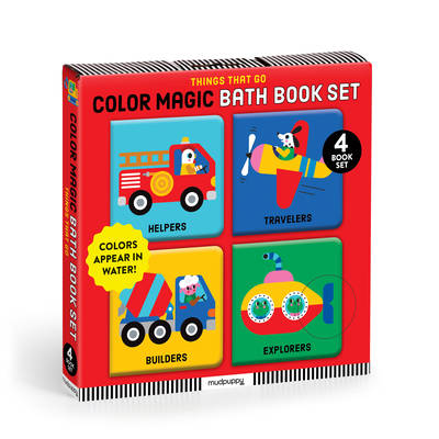 COLOR MAGIC BATH BOOK SET -- Mudpuppy's Things That Go Color Magic Bath Book Set includes four mini bath books that magically reveal vibrant colors when wet. Each book features a different vehicle theme--construction, emergency, transportation, and farm--making bath time an exciting adventure for toddlers and young children.