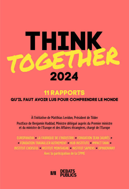 S’appuyant sur les rapports phares de l’année 2024 de dix think tanks (EuropaNova, La Fabrique de l’Industrie, Fondation Jean Jaurès, Fondation Travailler Autrement, HUB Institute, Impact Tank, Institut Choiseul, Institut Montaigne, Institut Sapiens, OpinionWay) et sur les éclairages de la CPME (Confédération des Petites et Moyennes Entreprises), Think Together aborde tous les sujets qui sont au cœur de nos sociétés et les décrypte en toute transparence. Protection de la biodiversité, sobriété énergétique, enjeux de souveraineté, équité et justice sociale, rapport au travail et au numérique… le tour d’horizon est français, européen et mondial.