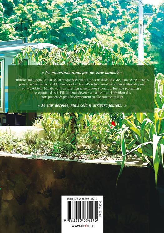 Hinako était jusque-là hantée par des pensées suicidaires sans désir de vivre, mais ses sentiments pour la sirène mangeuse d'hommes sont en train d'évoluer. Au-delà de leur relation de proie et de prédateur, Hinako voit son affection grandir pour Shiori, qui lui offre protection et acceptation de soi. Elle aimerait devenir son amie, mais la froideur des mots prononcés par Shiori résonnent en elle comme un rejet.