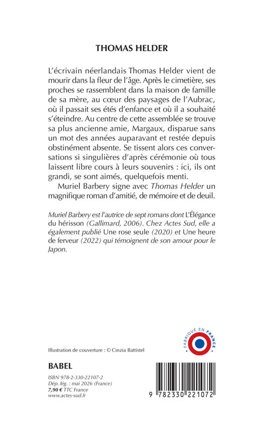 L'écrivain néerlandais Thomas Helder vient de mourir dans la fleur de l'âge. Après le cimetière, ses proches se rassemblent dans la maison de famille de sa mère, au coeur des paysages de l'Aubrac, où il passait ses étés d'enfance et où il a souhaité s'éteindre. Au centre de cette assemblée se trouve sa plus ancienne amie, Margaux, disparue sans un mot des années auparavant et restée depuis obstinément absente. Se tissent alors ces conversations si singulières d'après cérémonie où tous laissent libre cours à leurs souvenirs : ici, ils ont grandi, se sont aimés, quelquefois menti. Muriel Barbery signe avec Thomas Helder un magnifique roman d'amitié, de mémoire et de deuil.