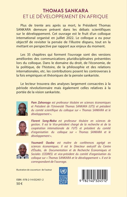 Plus de trente ans après sa mort, le Président Thomas SANKARA demeure présent dans les débats scientifiques sur le développement. Cet ouvrage est le fruit d'un colloque international organisé en juillet 2022. Le colloque a eu pour objectif de revisiter la pensée de l'illustre disparu, tout en la mettant en perspective par rapport aux enjeux du moment. Les 35 chapitres qui forment l'ouvrage sont des versions améliorées des communications pluridisciplinaires présentées lors du colloque. Dans le domaine du droit, de l'économie, de la politique, de l'histoire, de la philosophie et des relations internationales etc, les contributions posent les controverses à la fois empiriques et théoriques de la pensée sankariste. Le lecteur trouvera des analyses largement consacrées à la période révolutionnaire mais également celles relatives à la portée de la vision sankariste.