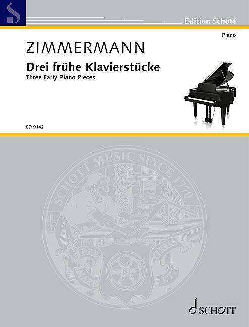 These three pieces found in the estate of the composer are a testimony to the compositional techniques employed by Zimmermann at the age of 22. They provide an interesting addition to his complete piano oeuvre. Instrumentation: piano