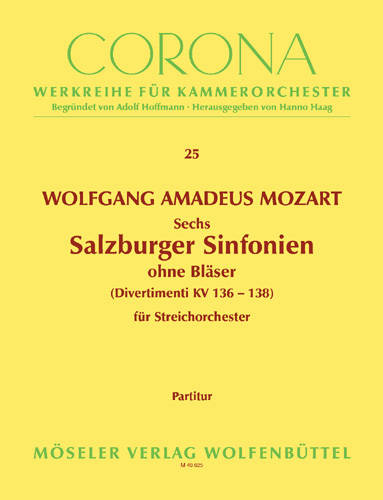 Die Werke entstanden vermutlich in den ersten Monaten des Jahres 1772. Sie trugen zunächst die KV-Nummern 125 a-c und wurden als Divertimenti geführt. Es handelt sich jedoch um Orchesterquartette oder Sinfonien ohne Bläser, wie sie beispielsweise aus Mannheim bekannt sind. Ob Mozart chorische oder solistische Besetzung gemeint hat, ist umstritten; für die chorische Besetzung spricht die Bezeichnung der Instrumente "... Viole / Basso". Schwierigkeitsgrad: 3-4