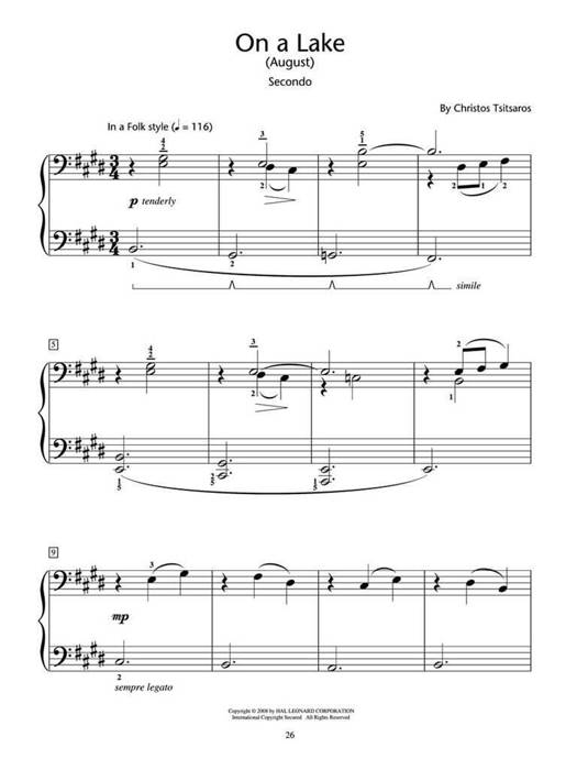 (Educational Piano Library). The events, activites, and scenes of the four seasons are the focus of this collection of piano duets. These pieces were designed for all students to focus on phrasing, articulation, and overall sound quality. Songs include: Winter Wind (January) * Grandmother's Tale (February) * Birdsong (March) * April Showers (April) * Spring Flowers (May) * Kite Flying (June) * Mountain Stream (July) * On a Lake (August) * Back to School (September) * Dancing Leaves (October) * Song of the Woods (November) * Seasonal Celebrations (December).