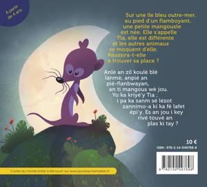 Sur une île bleu outre-mer, au pied d'un flamboyant, une petite mangouste est née. Elle s'appelle Tia, elle est différente et les autres animaux se moquent d'elle. Réussira-t-elle à trouver sa place ? Anlè an zil koulè blé lanmè, anpié an pié-flanbwayan, an ti mangous wè jou. Yo ka kriyé'y Tia; i pa ka sanm sé lézot zannimo-a ki ka fè lafet épi'y. Es an jou i key rivé touvé an plas ki tay ?