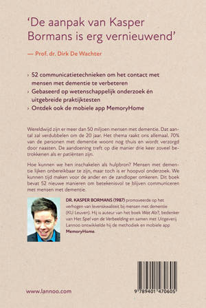 Hoe kunnen we hen inschakelen als hulpbron? Mensen met dementie lijken onbereikbaar te zijn, maar toch is er hoopvol onderzoek. We kunnen tijd maken voor de ander en de zandloper omkeren. Dit boek bevat 52 nieuwe manieren om betekenisvol te blijven communiceren met mensen met dementie.