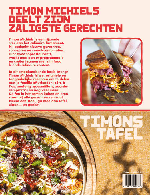 In dit smaakmakende boek brengt Timon Michiels frisse, originele en toegankelijke recepten om te delen met je familie of vrienden: côte à l'os, zeetong, quesadilla’s, zuurdesempizza's en nog veel meer. De fun in het samen koken en eten staat bij alle gerechten centraal. Neem een stoel, ga mee aan tafel zitten... en geniet!