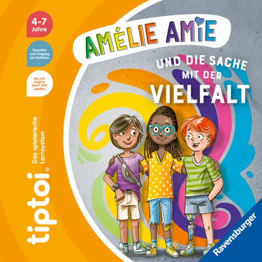 Alle sind willkommen! Amélie, Lucky und Ben wünschen sich einen Wohlfühlort direkt vor der eigenen Haustür, an dem alle willkommen sind. Gemeinsam verschönern sie den kargen Hinterhof mit Farbe, Pflanzen und einem Baumhaus. Dabei treffen sie viele Leute und stellen fest, wie vielfältig ihre Nachbarschaft ist. Die drei merken, dass wir Menschen meistens mehr Gemeinsamkeiten als Unterschiede haben und dass Vielfalt das Miteinander bereichert. Eine interaktive Bildergeschichte über den Umgang mit Gefühlen. Mit tiptoi® erleben Kinder in dieser Bilderbuchreihe fantastische Geschichten von großen Gefühlen. Im Fokus stehen soziale Kompetenzen wie Selbstvertrauen, Konfliktbewältigung, Empathie, Toleranz, Akzeptanz oder Wertschätzung. Starke Charaktere schaffen ein hohes Identifikationspotenzial.