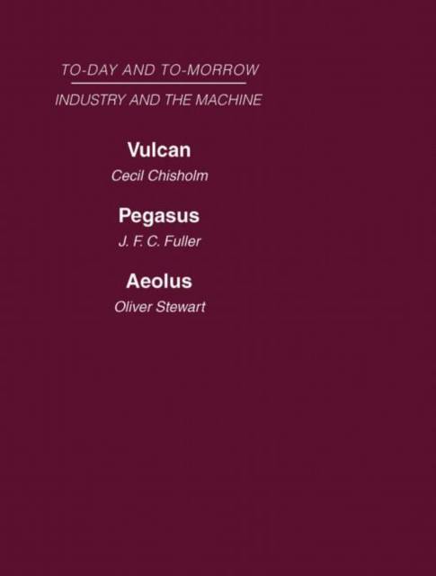 Today and Tomorrow Volume 13 Industry and the Machine re-issues Vulcan or the Future of Labour, Pegasus: Problems of Transportation, and Aeolus or the Future of the Flying Machine, arguing that industrial progress will eventually alleviate poverty.