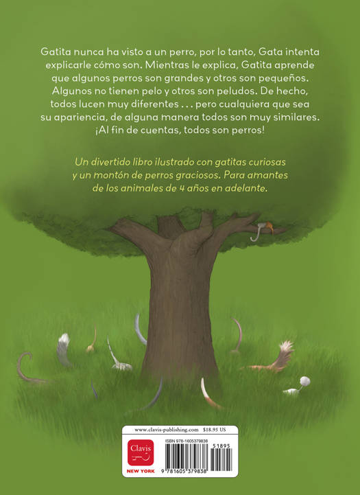 Gatita nunca ha visto a un perro, por lo tanto, Gata intenta explicarle cómo son. Mientras le explica, Gatita aprende que algunos perros son grandes y otros son pequeños. Algunos no tienen pelo y otros son peludos. De hecho, todos lucen muy diferentes . . . pero cualquiera que sea su apariencia, de alguna manera todos son muy similares. ¡Al fin de cuentas, todos son perros!