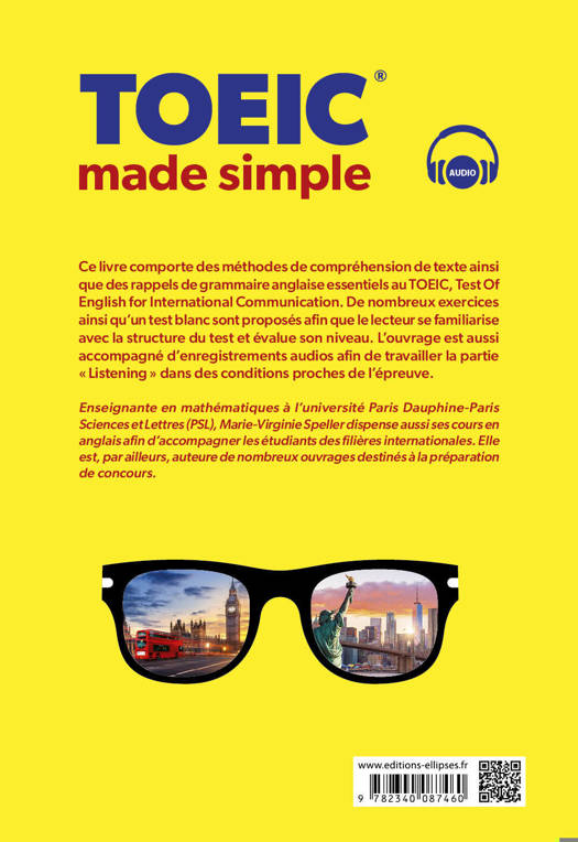 Ce livre comporte des méthodes de compréhension de texte ainsi que des rappels de grammaire anglaise essentiels au TOEIC, Test Of English for International Communication. De nombreux exercices ainsi qu'un test blanc sont proposés afin que le lecteur se familiarise avec la structure du test et évalue son niveau. L'ouvrage est aussi accompagné d'enregistrements audios afin de travailler la partie « Listening » dans des conditions proches de l'épreuve.