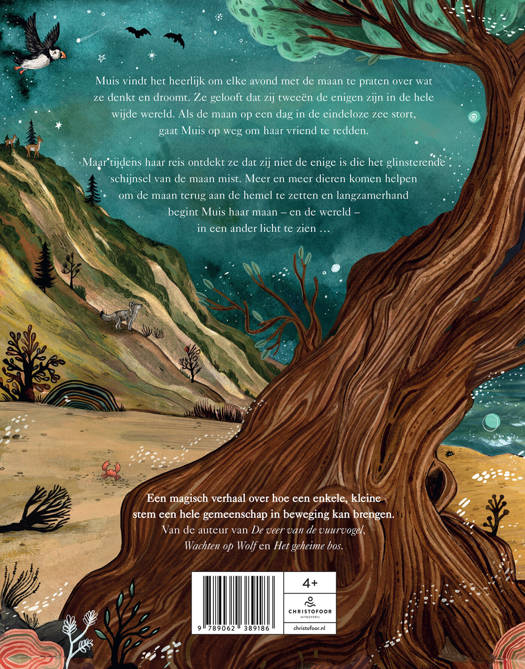 Muis vindt het heerlijk om elke avond met de maan te praten over wat ze denkt en droomt. Ze gelooft dat zij tweeën de enigen zijn in de hele wijde wereld. Als de maan op een dag in de eindeloze zee stort, gaat Muis op weg om haar vriend te redden. Maar tijdens haar reis ontdekt ze dat zij niet de enige is die het glinsterende schijnsel van de maan mist. Meer en meer dieren komen helpen om de maan terug aan de hemel te zetten en langzamerhand begint Muis haar maan, en de wereld in een ander licht te zien...