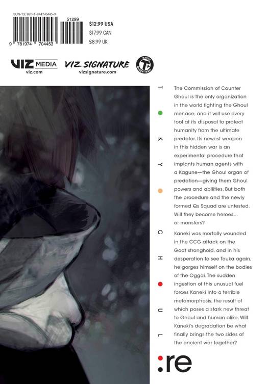 In the world of Tokyo Ghoul, sometimes the only way to fight monsters is to become one... The Commission of Counter Ghoul is the only organization fighting the Ghoul menace, and they will use every tool at their disposal to protect humanity from its ultimate predator. Their newest weapon in this hidden war is an experimental procedure that implants human investigators with a Ghoul's Kagune, giving them Ghoul powers and abilities. But both the procedure and the newly formed Qs Squad are untested. Will they become heroes...or monsters?!