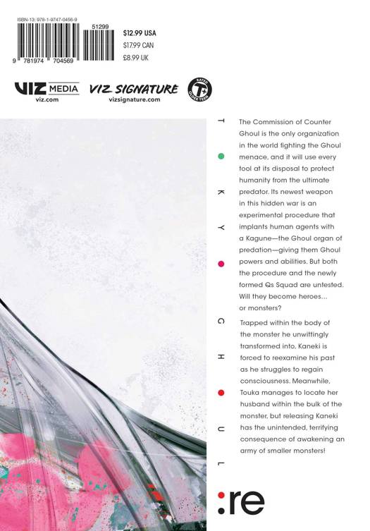In the world of Tokyo Ghoul, sometimes the only way to fight monsters is to become one... The Commission of Counter Ghoul is the only organization fighting the Ghoul menace, and they will use every tool at their disposal to protect humanity from its ultimate predator. Their newest weapon in this hidden war is an experimental procedure that implants human investigators with a Ghoul's Kagune, giving them Ghoul powers and abilities. But both the procedure and the newly formed Qs Squad are untested. Will they become heroes...or monsters?!