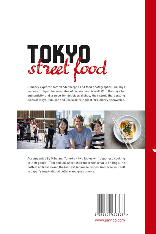 The latest episode in the adventures of culinary explorer Tom Vandenberghe and food photographer Luk Thys takes place in Tokyo. With an eye for authenticity and a nose for delicious dishes, they stroll around in the Japanese capital, seeking new culinary discoveries. They taste as much as possible and share their surprising experiences in this dazzling culinary travel guide about the street food in Japan. They are accompanied by two well-known Japanese cooking personalities: Miho Shibuya and Tomoko Kaji.