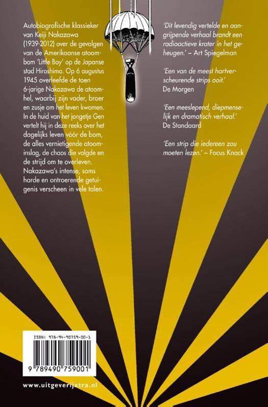 Autobiografische klassieker van Keiji Nakazawa (1939-2012) over de gevolgen van de Amerikaanse atoombom 'Little Boy' op de Japansestad Hiroshima. Op 6 augustus 1945 overleefde de toen 6-jarige Nakazawa de atoomhel, waarbij zijn vader, broer en zusje om het leven kwamen.In de huid van het jongetje Genvertelt hij in deze reeks over hetdagelijks leven vóór de bom, de alles vernietigende atoom-inslag, de chaos die volgde ende strijd om te overleven. Nakazawa's intense, soms harde en ontroerende getuigenis verscheen in vele talen.