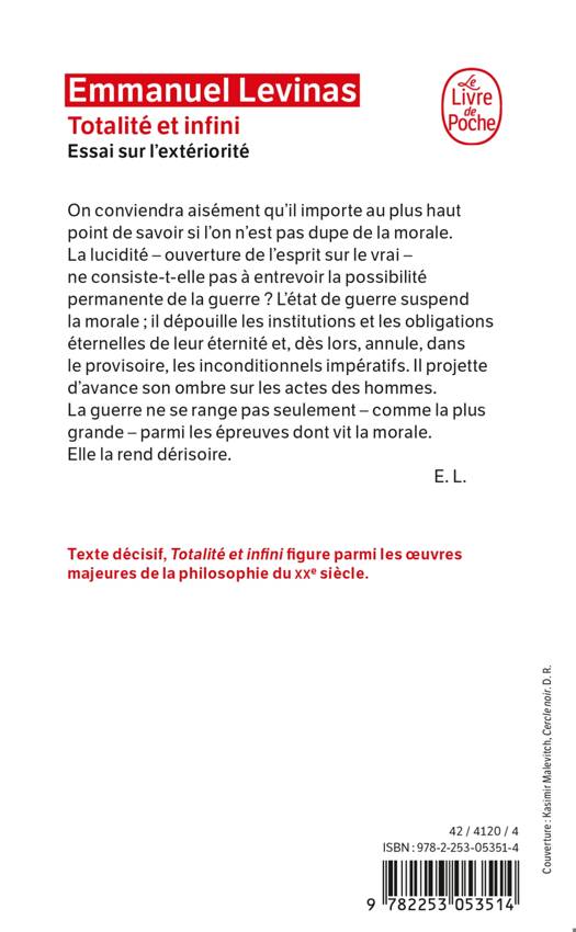 Texte décisif, Totalité et infini figure parmi les oeuvres majeures de la philosophie du xxe siècle.