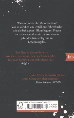 Warum musste ihr Mann sterben? War es wirklich ein Unfall mit Fahrerflucht, wie alle behaupten? Blum beginnt Fragen zu stellen und als sie die Antworten gefunden hat, schlägt sie zu. Erbarmungslos. »Sie denken, Lisbeth Salander ist tough? Warten Sie, bis Sie die Totenfrau gelesen haben« francesca Cristoffanini, rizzoli, italien