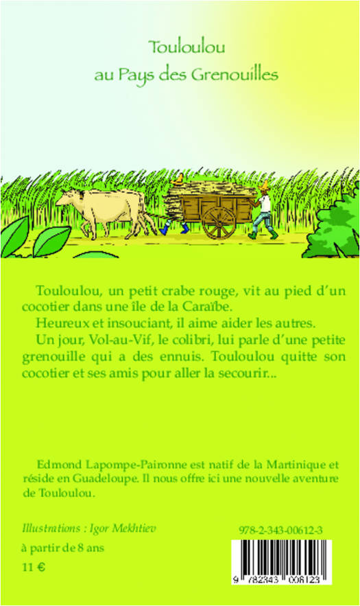 Touloulou, un petit crabe rouge, vit au pied d'un cocotier dans une île de la Caraïbe. Heureux et insouciant, il aime aider les autres. Un jour, Vol-au-Vif, le colibri, lui parle d'une petite grenouille qui a des ennuis. Touloulou quitte son cocotier et ses amis pour aller la secourir...