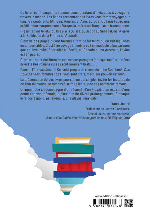 Ce livre réunit cinquante romans comme autant d’invitations à voyager à travers le monde. Les fiches présentant ces livres vous feront voyager sur tous les continents (Afrique, Amérique, Asie, Europe, Océanie) avec une prédilection marquée pour l’Europe, la littérature française et francophone.
