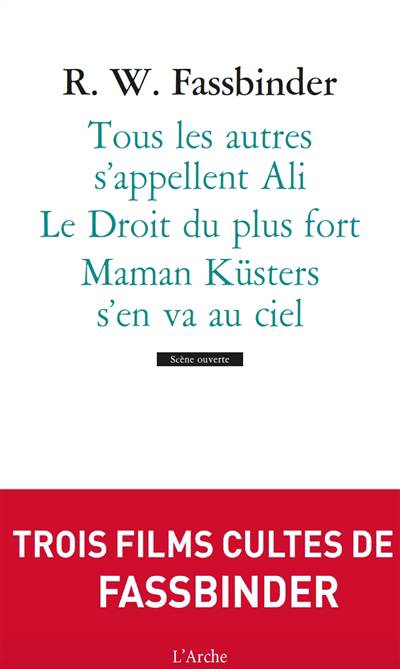 Les dialogues de 3 films majeurs de l’enfant terrible du cinéma allemand. Maman Küsters apprend que son mari, ouvrier dans une usine chimique, s’est suicidé après avoir tué son patron. La presse à scandales harcèle la veuve. Pression médiatique, conflits de classe et engagement politique s’entremêlent avec brio dans ce drame. Franz, jeune homme d’origine modeste, gagne une importante somme d’argent au loto. Il s’entiche alors d’Eugen, jeune bourgeois aux goûts de luxe. Eugen usera de ses charmes pour lui inculquer les bonnes manières tout en pillant sa fortune, menant ainsi Franz à sa perte. Emmi, veuve d’une soixantaine d’années, rencontre Ali, jeune immigré, dans un café. Il s’installe chez elle dès le lendemain et ils se marient. Leur romance à contrecourant scandalise l’Allemagne des années 70. Comment cette relation résistera-t-elle à l’intolérance et aux préjugés ?