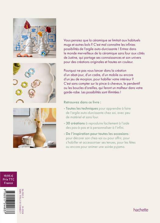 Retrouvez dans ce livre : - Toutes les techniques pour apprendre à faire de l’argile auto-durcissante chez soi, avec peu de matériel et sans four. - 30 créations à reproduire facilement à l’aide des pas-à-pas et à personnaliser à l’infini. - De l’inspiration pour toutes les occasions : pour décorer son chez-soi ou pour offrir, pour s’habiller et accessoiriser ses tenues, pour les fêtes ou encore pour animer une soirée pyjama.
