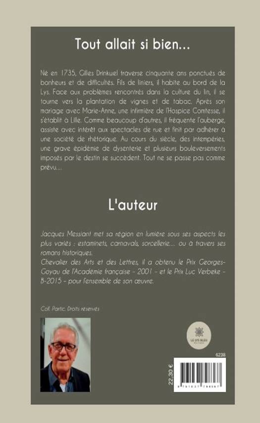 Né en 1735, Gilles Drinkwel traverse cinquante ans ponctués de bonheurs et de difficultés. Fils de liniers, il habite au bord de la Lys. Face aux problèmes rencontrés dans la culture du lin, il se tourne vers la plantation de vignes et de tabac. Après son mariage avec Marie-Anne, une infirmière de l'Hospice Comtesse, il s'établit à Lille. Comme beaucoup d'autres, il fréquente l'auberge, assiste avec intérêt aux spectacles de rue et finit par adhérer à une société de rhétorique. Au cours du siècle, des intempéries, une grave épidémie de dysenterie et plusieurs bouleversements imposés par le destin se succèdent. Tout ne se passe pas comme prévu...