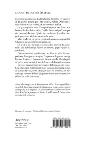 Économiste, spécialiste d'Adam Smith, des bulles spéculatives et des profits générés par l'Holocauste, Roland Oberstein se rêve en homme de science, en universitaire parfait.