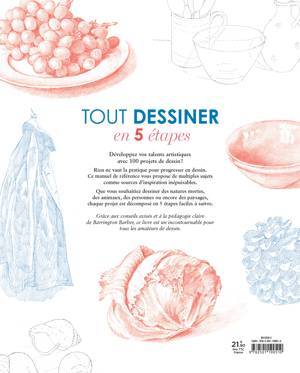 Rien ne vaut la pratique pour progresser en dessin. Ce manuel de référence vous propose de multiples sujets comme sources d’inspiration inépuisables. Que vous souhaitiez dessiner des natures mortes, des animaux, des personnes ou encore des paysages, chaque projet est décomposé en 5 étapes faciles à suivre.