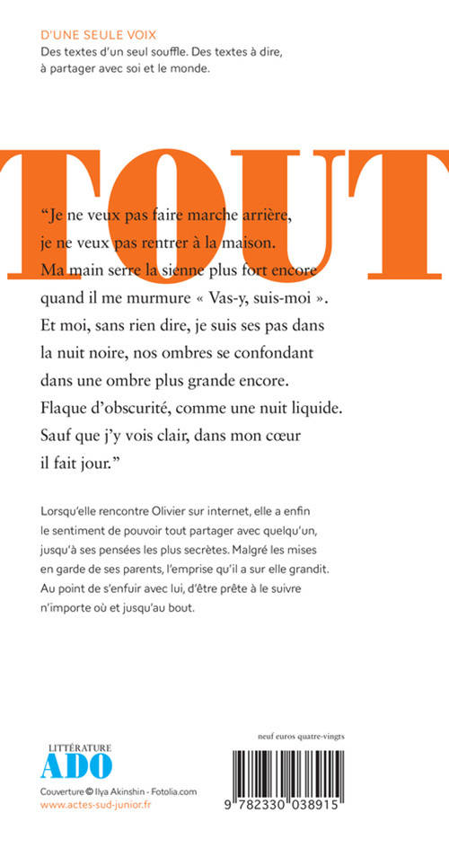 Lorsqu'elle rencontre Olivier sur internet, elle a enfin le sentiment de pouvoir tout partager avec quelqu'un. Ses pensées les plus secrètes, ses peines parfois aussi. Mais bientôt, l'emprise qu'exerce ce garçon plus âgé sur elle grandit. Au point de s'enfuir ensemble, d'être prête à le suivre n'importe où et jusqu'au bout.