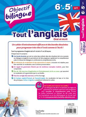 Un cahier d'entraînement efficace et des bandes dessinées pour progresser très vite à l'oral comme à l'écrit ! Tout le programme d’anglais de la 6e et de la 5e, en 20 leçons. Chaque leçon te propose :