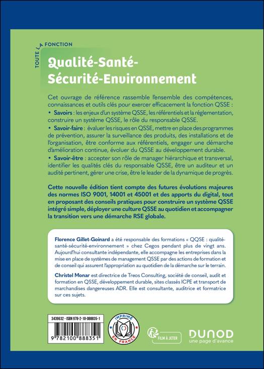 Cet ouvrage de référence rassemble l’ensemble des compétences, connaissances et outils clés pour exercer efficacement la fonction QSSE : • Savoirs : les enjeux d’un système QSSE, les référentiels et la réglementation, construire un système QSSE, le rôle du responsable QSSE. • Savoir-faire : évaluer les risques en QSSE, mettre en place des programmes de prévention, assurer la surveillance des produits, des installations et de l’organisation, être conforme aux référentiels, engager une démarche d’amélioration continue, évoluer du QSSE au développement durable. • Savoir-être : accepter son rôle de manager hiérarchique et transversal, identifier les qualités clés du responsable QSSE, être un auditeur et un audité pertinent, gérer une crise, être le leader de la dynamique de progrès. Cette nouvelle édition tient compte des futures évolutions majeures des normes ISO 9001, 14001 et 45001 et des apports du digital, tout en proposant des conseils pratiques pour construire un système QSSE intégré simple, déployer une culture QSSE au quotidien et accompagner la transition vers une démarche RSE globale.