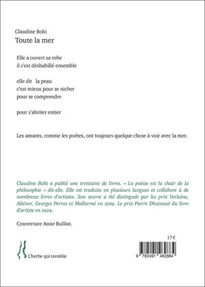 Elle dit « connaissez-vous la mer je vous y mènerai, nous la prendrons ensemble, on prend comme ça la main de nos enfants, oui quand ils pleurent dans la nuit jaune, qu’ils se salissent et se retournent et quand ils pleurent sur les chevaux du siècle qui ont brisé leurs mors et sont devenus fous, oui nous prendrons la mer, elle est bien là parmi nos jambes et tous nos bras la retrouvent ah ! recommencez donc la soie de vos yeux dans les paupières de l’amour recommencez-vous avec moi, recommencez tout regardez, le monde nous revient avec ses fruits ouverts, ses oiseaux de vertige qui glissent dans le bleu, toujours ce bleu qui nous emporte et qui nous éclabousse Connaissez-vous la mer, fermez les bras sur elle, dans nos silences elle est là tout entière, elle roule dans les moulins du désir qui tournent dans nos reins »
