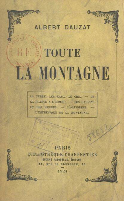 La terre, les eaux, le ciel, de la plante à l'homme, les saisons et les heures, l'alpinisme, l'esthétique de la montagne