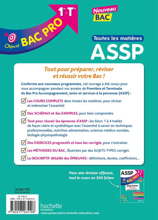Conforme aux nouveaux programmes du bac, cet ouvrage a été conçu pour vous accompagner pendant vos années de Première et Terminale du Bac Pro Accompagnement, Soins et Services à la Personne (ASSP) :