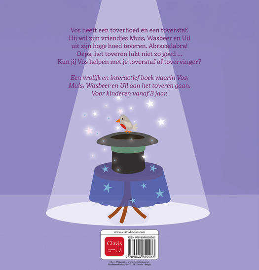 Een vrolijk en interactief boek waarin Vos, Muis, Wasbeer en Uil aan het toveren gaan. Voor kinderen vanaf 3 jaar.