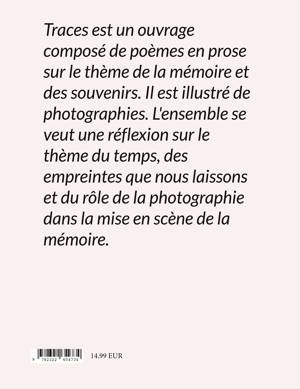 Traces est un ouvrage composé de poèmes en prose sur le thème de la mémoire et des souvenirs. Il est illustré de photographies. L'ensemble se veut une réflexion sur le thème du temps, des empreintes que nous laissons et du rôle de la photographie dans la mise en scène de la mémoire.